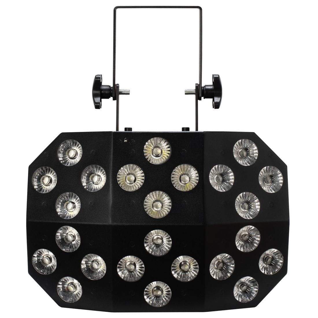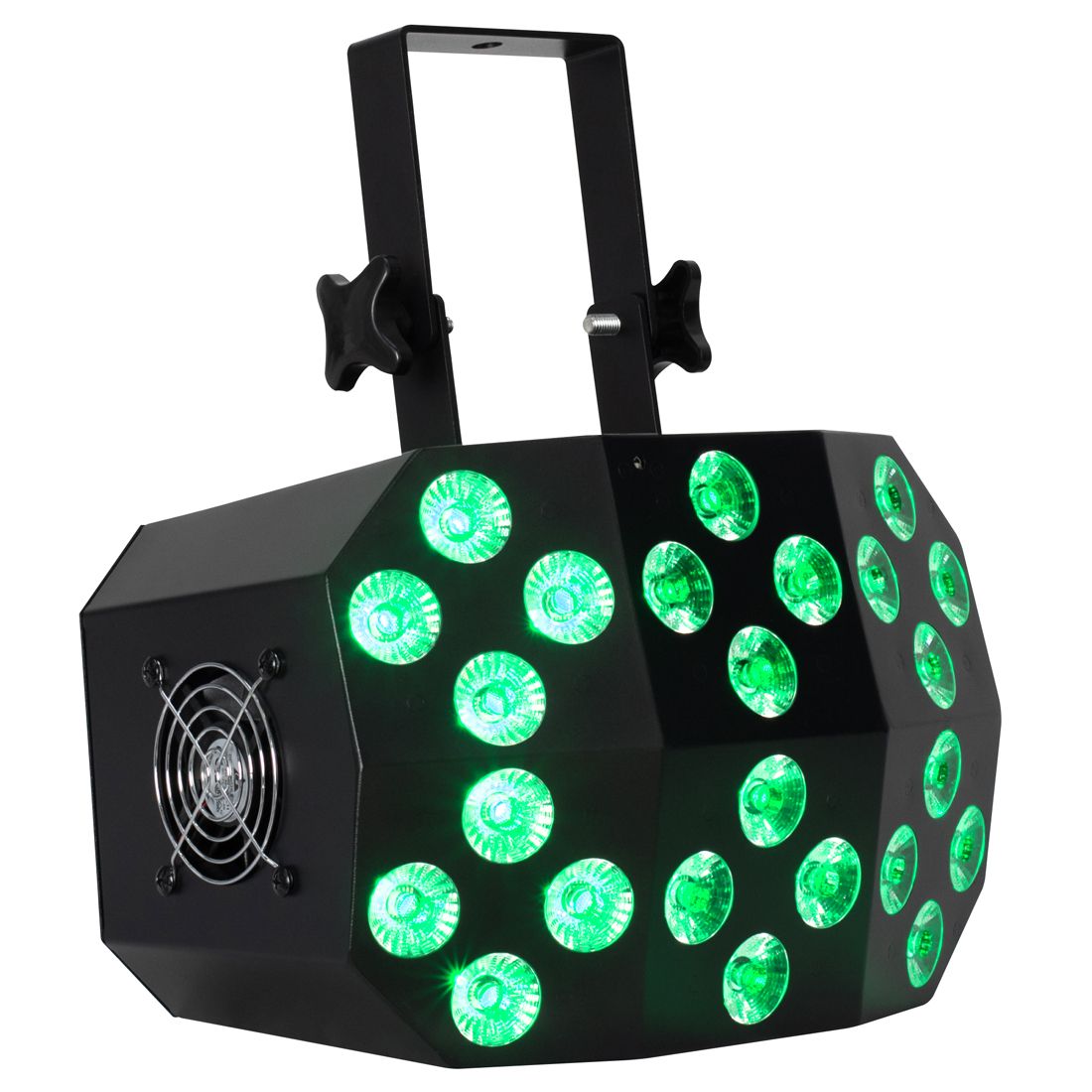 • 24 x 10-Watt, 6-IN-1 Hex (RGBWA+UV) LEDs
