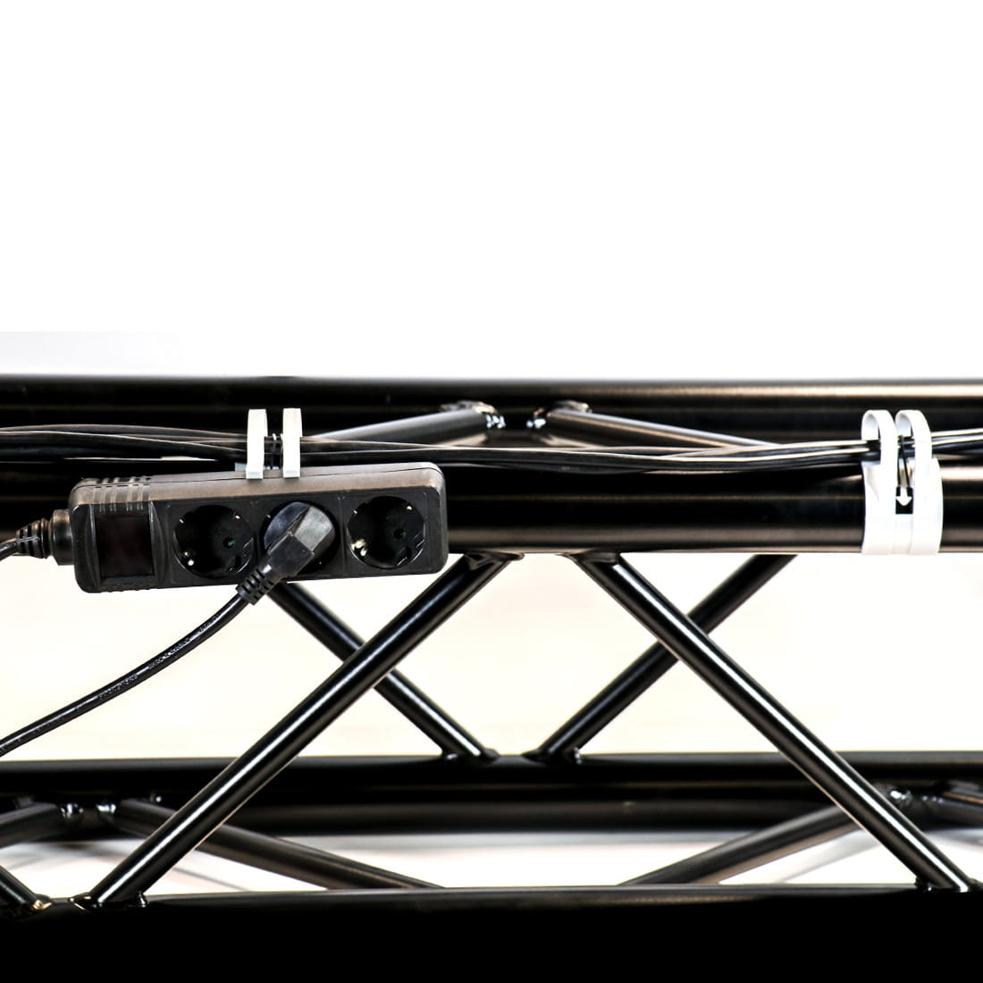 Nowatorski system zarządzania kablami wykonany z tworzywa sztucznego do mocowania kabli do kratownic z rurą 48-51 mm.