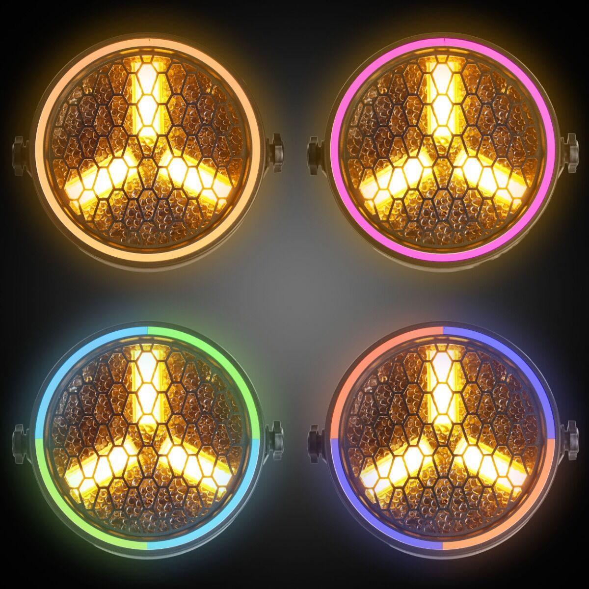 Dodatkowy pierścień 51 diod RGB SMD pozwala generować kolorowe animacje, które mogą pracować niezależnie od głównego światła. ⚡ Dzięki temu reflektor sprawdzi się zarówno jako stylowe oświetlenie sceny, jak i efekt wizualny podczas dynamicznych momentów imprezy.