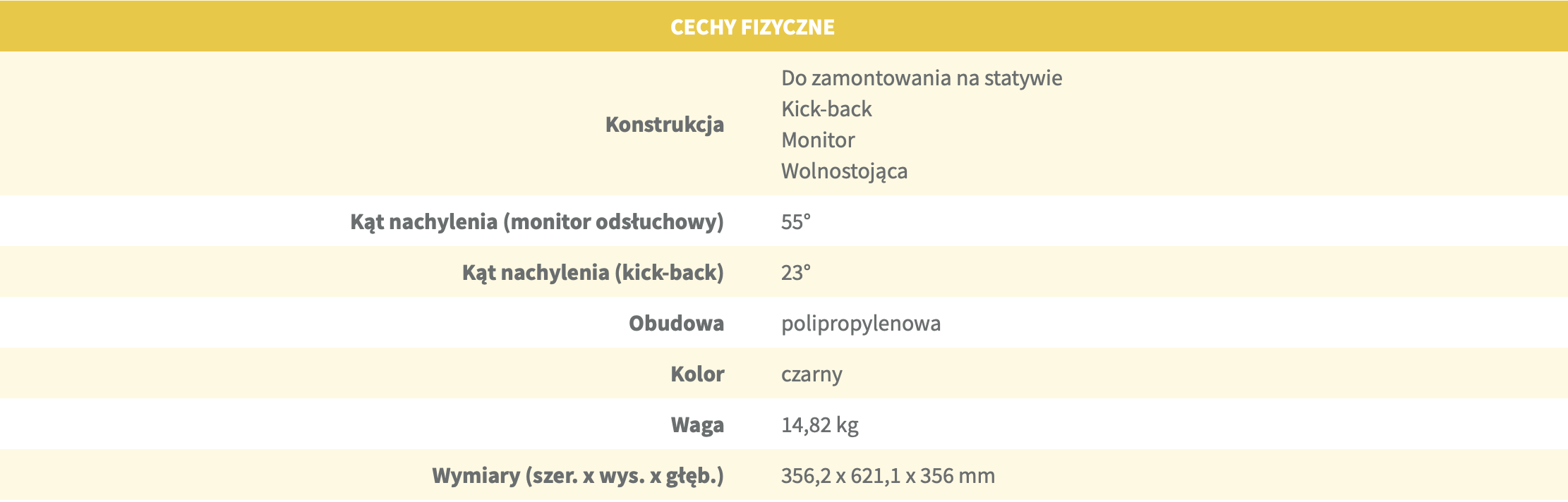 Obudowa wykonana jest z wytrzymałego polipropylenu, a jej nowa konstrukcja wewnętrzna zapewnia dodatkowe wzmocnienie. Symetryczne boki o kącie 55° pozwalają ustawić głośnik w pozycji monitora, umożliwiając użytkownikom odsłuch, ale jednocześnie ułatwiając dostęp do wzmacniacza i panelu sterowania.