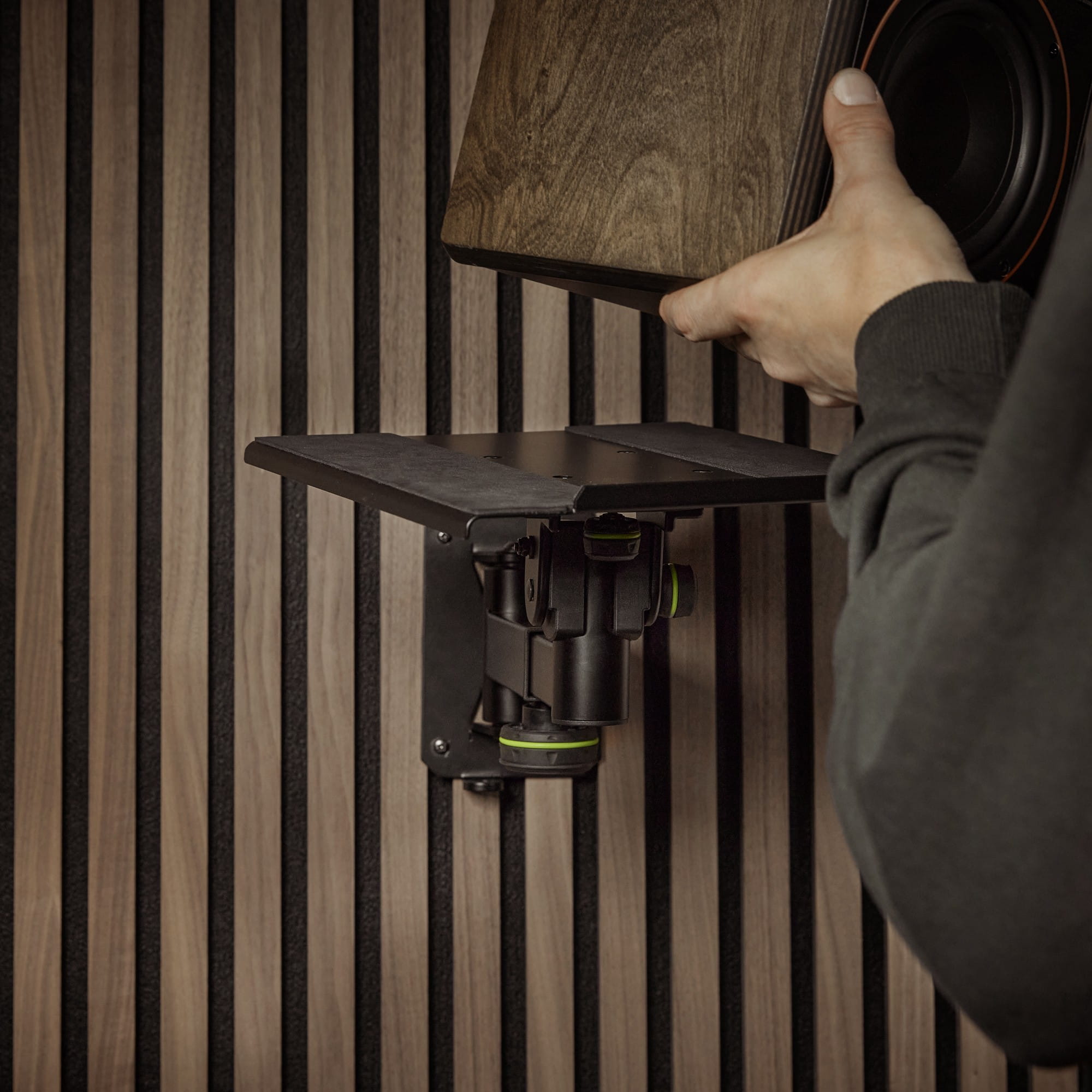 Gravity SP WM 1 B jest najlepszym rozwiazaniem tego problemu. Dzieki temu solidnemu i stabilnemu uchwytowi sciennemu mozesz bez wysilku umiescic monitory na scianie. SP WM 1 B posiada plyte scienna o grubosci 5 mm do bezpiecznego mocowania konstrukcji do sciany, o imponujacej maksymalnej nosnosci 50 kg, która mozna dodatkowo zabezpieczyc za pomoca zintegrowanego oczka bezpieczenstwa. Zgodnie z oczekiwaniami stawianymi marce Gravity, wszystko jest bezpiecznie zablokowane za pomoca trwalych, latwych do uchwycenia pokretel. Inteligentna konstrukcja umozliwia regulacje ramienia podporowego w pieciu pozycjach i obrót w poziomie o 180°, co pozwala na dostosowanie do specyficznych wymagan przestrzennych Twojego pomieszczenia. Zapewnia to prosty proces prawidlowego pozycjonowania monitorów, tworzac czysty trójkat odsluchowy ze sweet spotem.