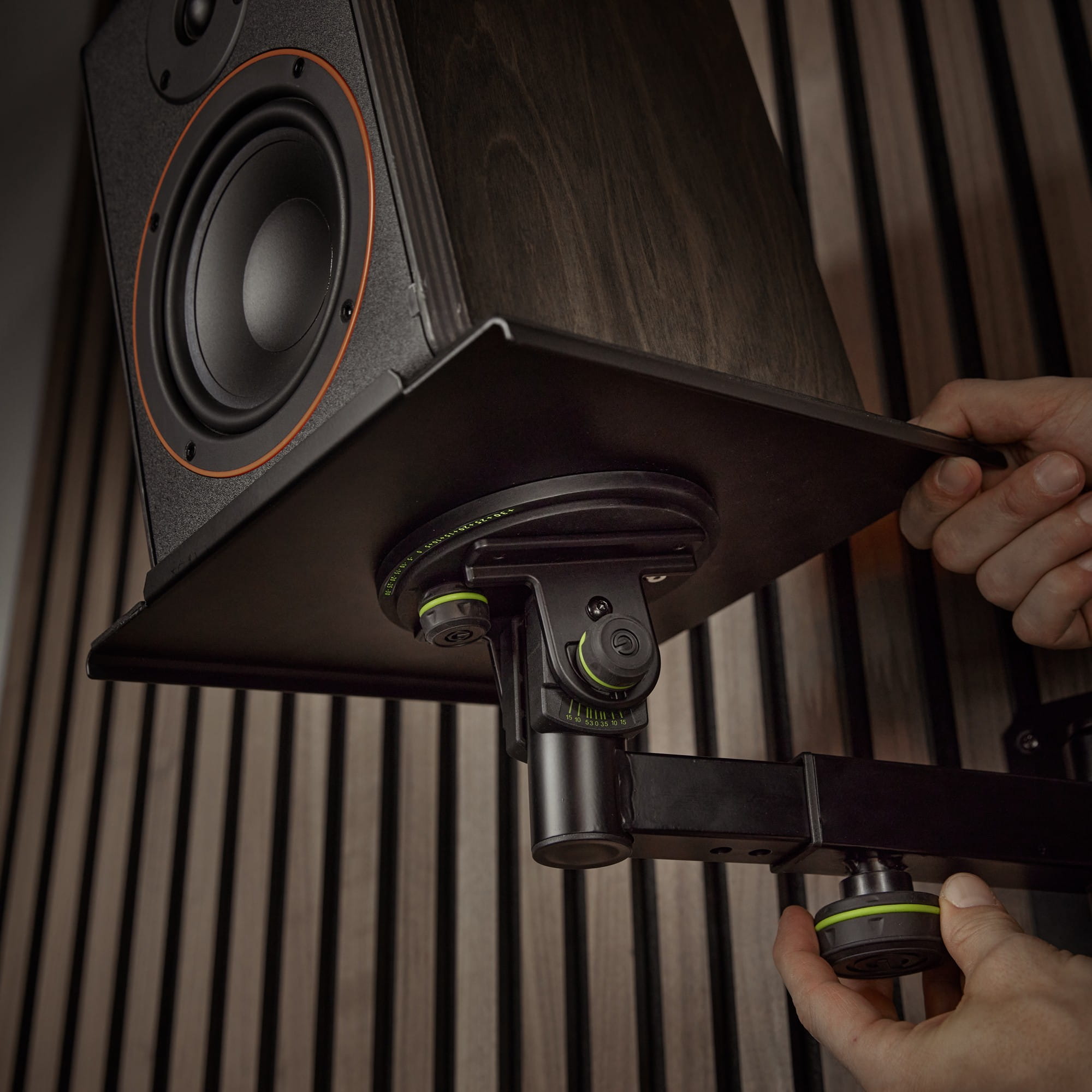 Co wiecej, SP WM 1 B zapewnia wszystkie niezbedne funkcje do idealnego dopasowania monitora do Twojej pozycji odsluchowej. Powierzchnie nosna o wymiarach 250 x 250 mm mozna obracac o 30° i przechylac o maksymalnie 15° - w obu kierunkach. Dzieki wyraznie widocznym oznaczeniom, Twoje monitory moga byc precyzyjnie ustawione. Ponadto, wysciólka EVA i zabezpieczenie przed przechyleniem z przodu powierzchni podparcia gwarantuja, ze Twoje cenne monitory pozostana bezpiecznie na swoim miejscu przez caly czas, nawet przy maksymalnym nachyleniu.