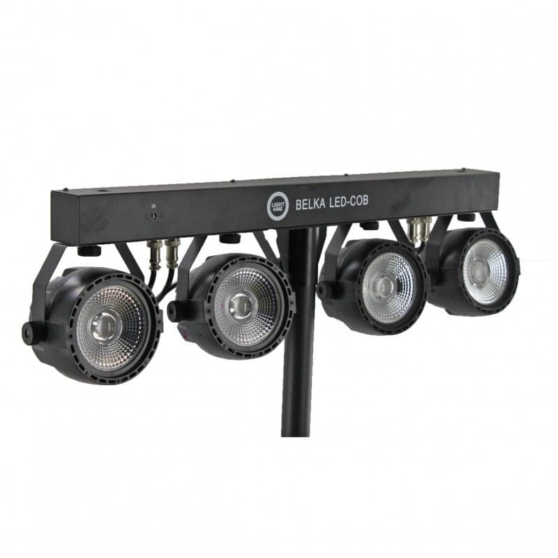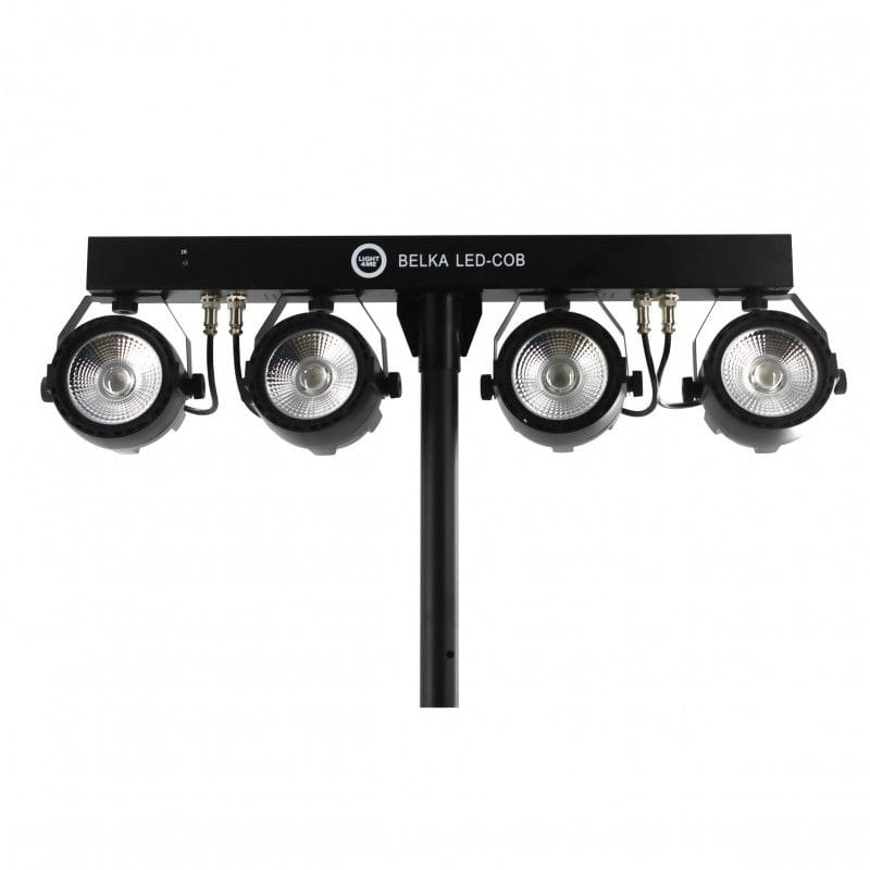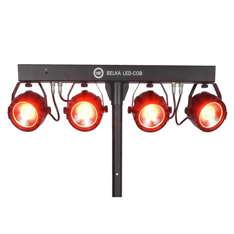 LIGHT4ME BELKA LED COB PAR to kompletny zestaw oświetleniowy. Jego najważniejszą część stanowią 4 solidne reflektory LED PAR z diodami COB (Chip On Board). Każdy reflektor posiada moc 30W i pracuje w palecie kolorów RGB (czerwony, zielony, niebieski). Oświetlenie mocowane jest na 66-centymetrowej listwie, która na tylnej części obudowy posiada panel sterowania składający się z czterech przycisków (Menu, Up, Down, Enter) oraz wyświetlacza LED. Kontrolę nad pracą zestawu umożliwia również pilot, a także – dzięki gniazdom DMX (in/out) – zewnętrzne sterowniki i konsolety. System, wykorzystując wbudowane programy, może także działać w sposób automatyczny lub w zgodzie z dźwiękiem.