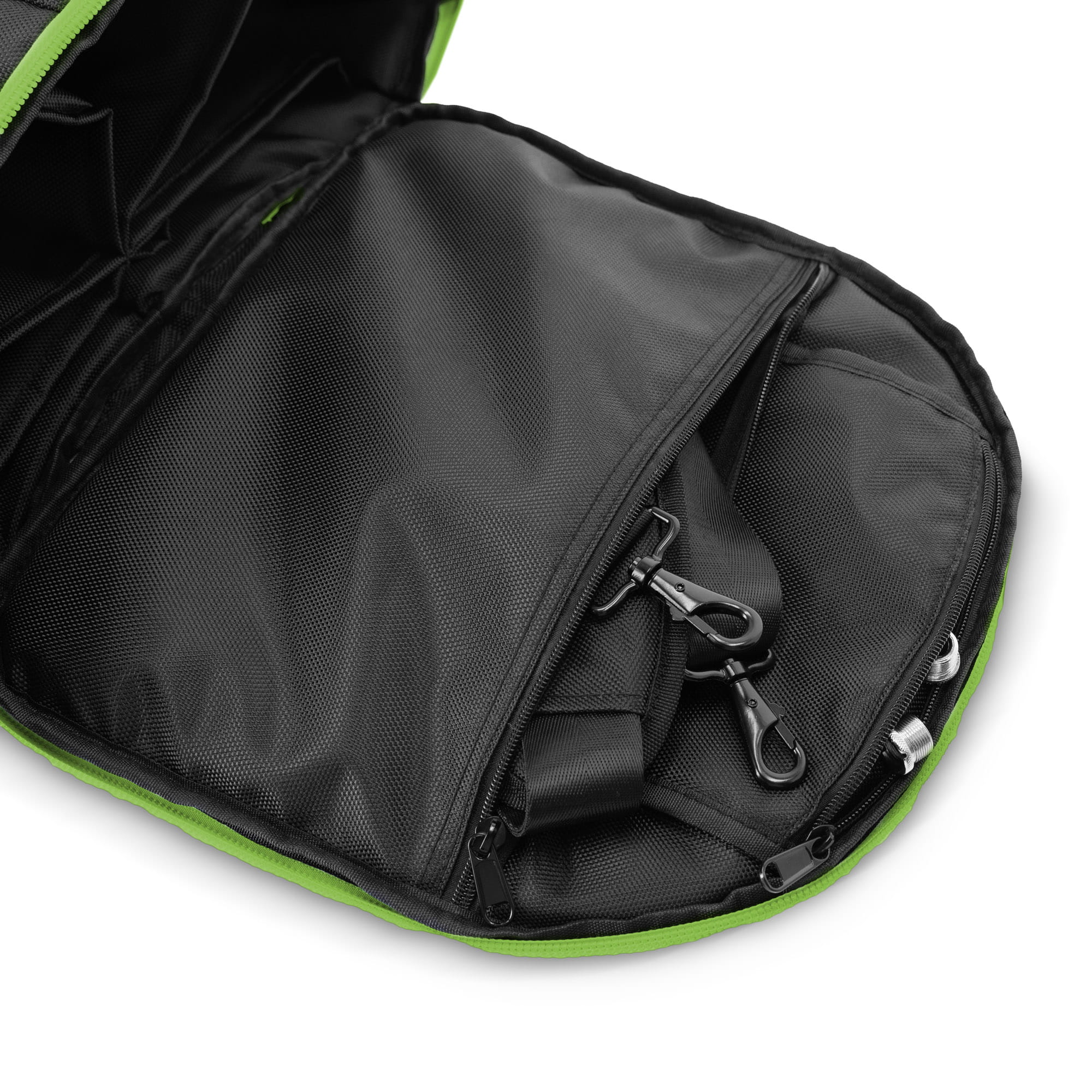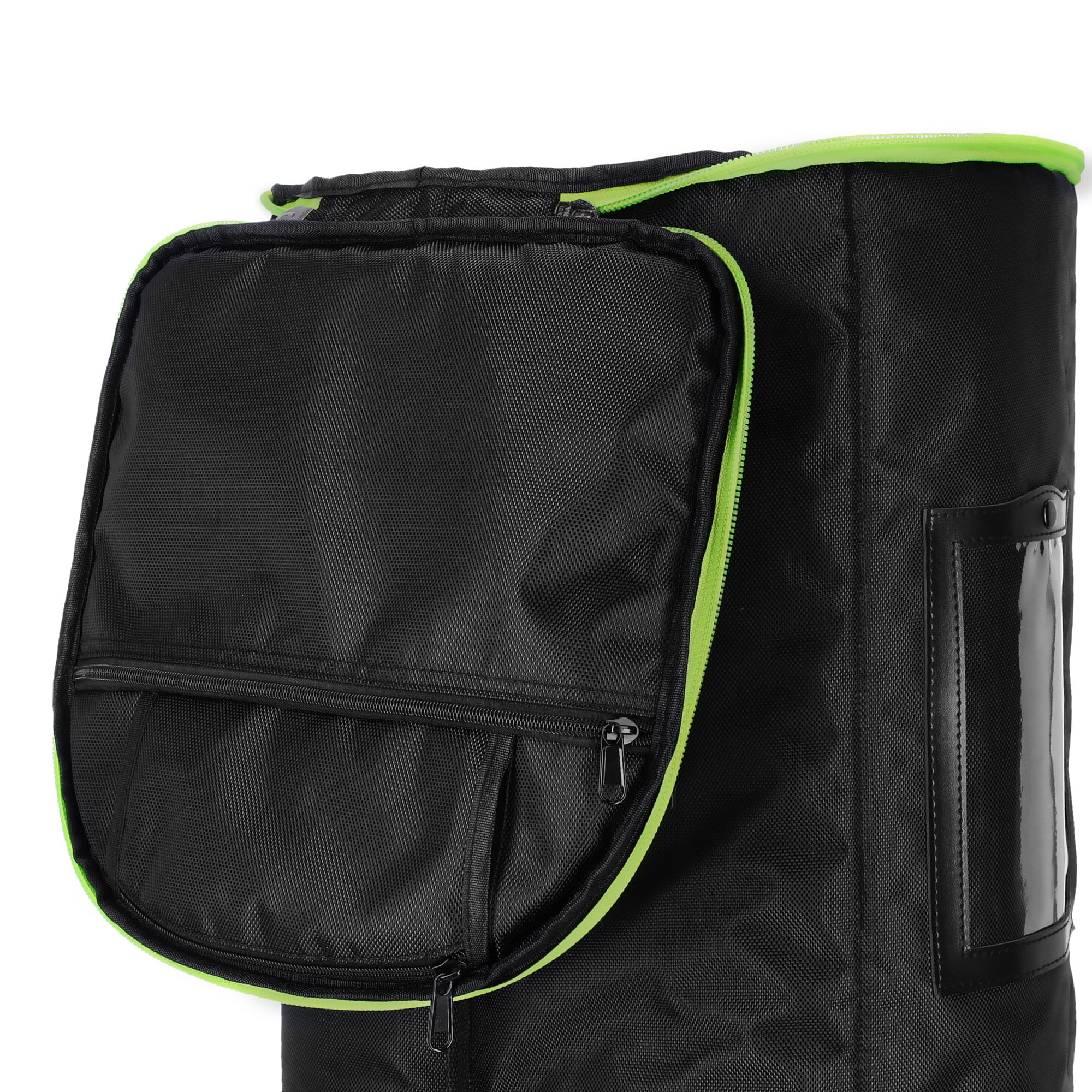Wyściełane uchwyty do przenoszenia i solidny zamek błyskawiczny gwarantują łatwą obsługę. W zestawie znajduje się również pasek do przenoszenia, który może bezpiecznie udźwignąć obciążenie do 25 kg. Praktyczna przezroczysta przegródka na etykiety tras i dodatkowe przegródki na małe przedmioty zapewniają większą przestrzeń do przechowywania akcesoriów i ułatwiają organizację.