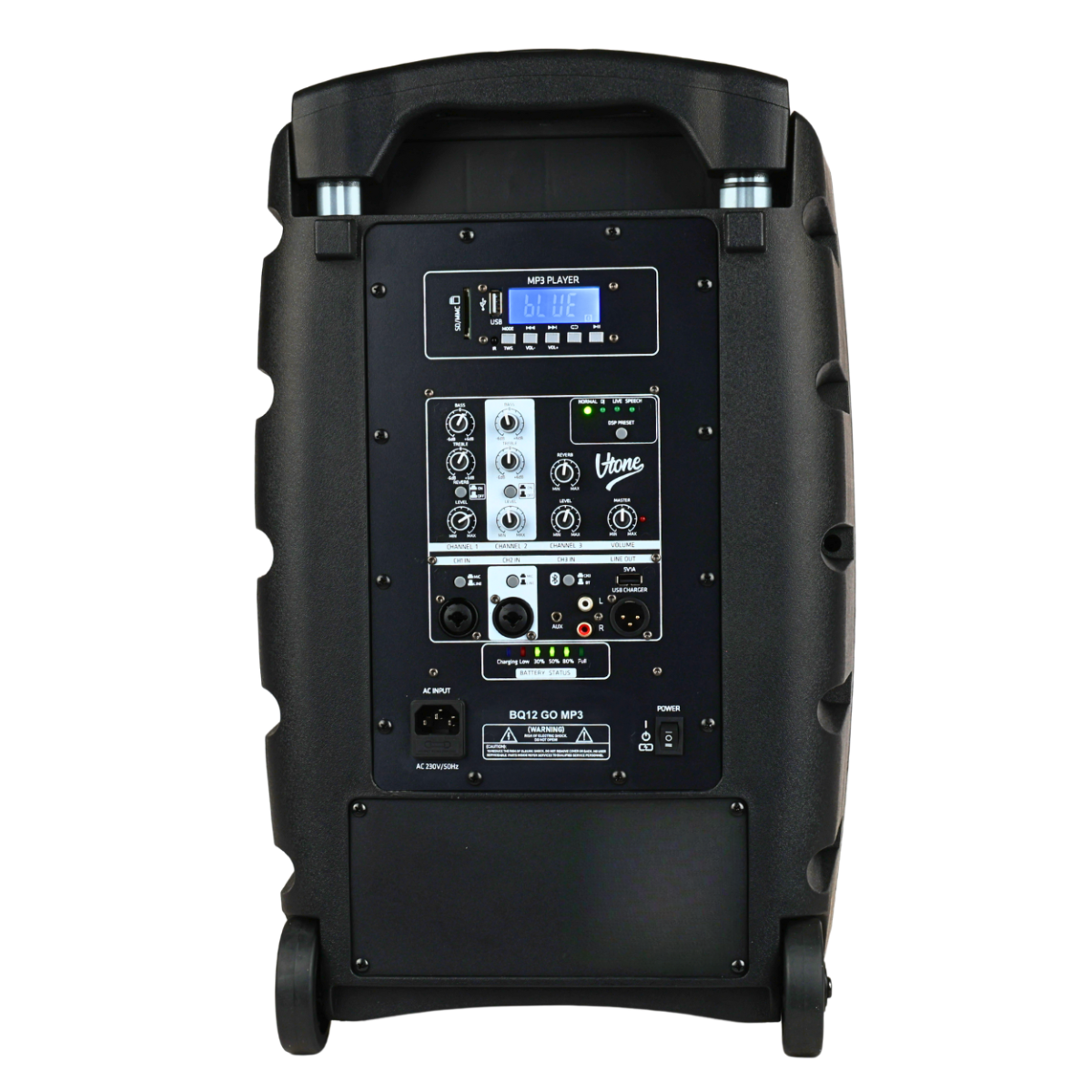 Dzięki akumulatorowi 12V 7000 mAh możesz grać do 12 godzin bez przerwy ✅. Wskaźnik ładowania i poziomu energii dają Ci pełny obraz sytuacji źródła zasilania w każdej chwili ☑️ Transport? Żaden problem – solidna obudowa z tworzywa ABS, wysuwana rączka i kółka to gotowość do drogi w kilka sekund ✨. Niezależnie czy to piknik rodzinny, prezentacja w szkole, wesele w plenerze czy pokaz uliczny – V-TONE BQ12 GO MP3 sprosta każdemu wyzwaniu⚡.