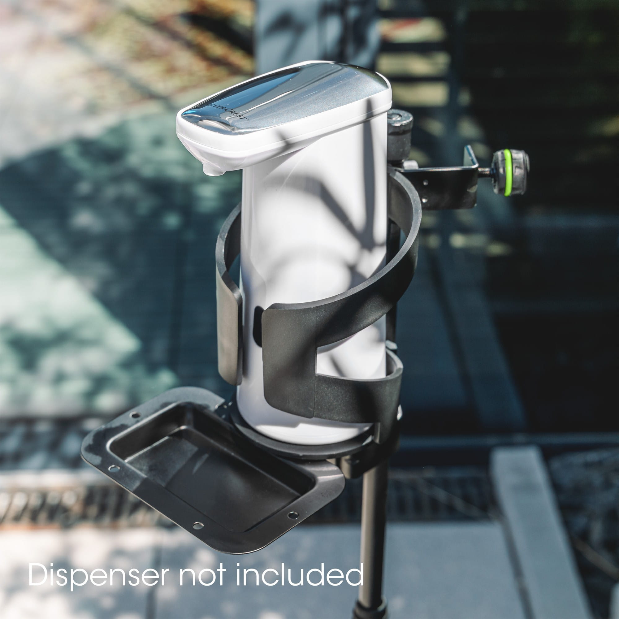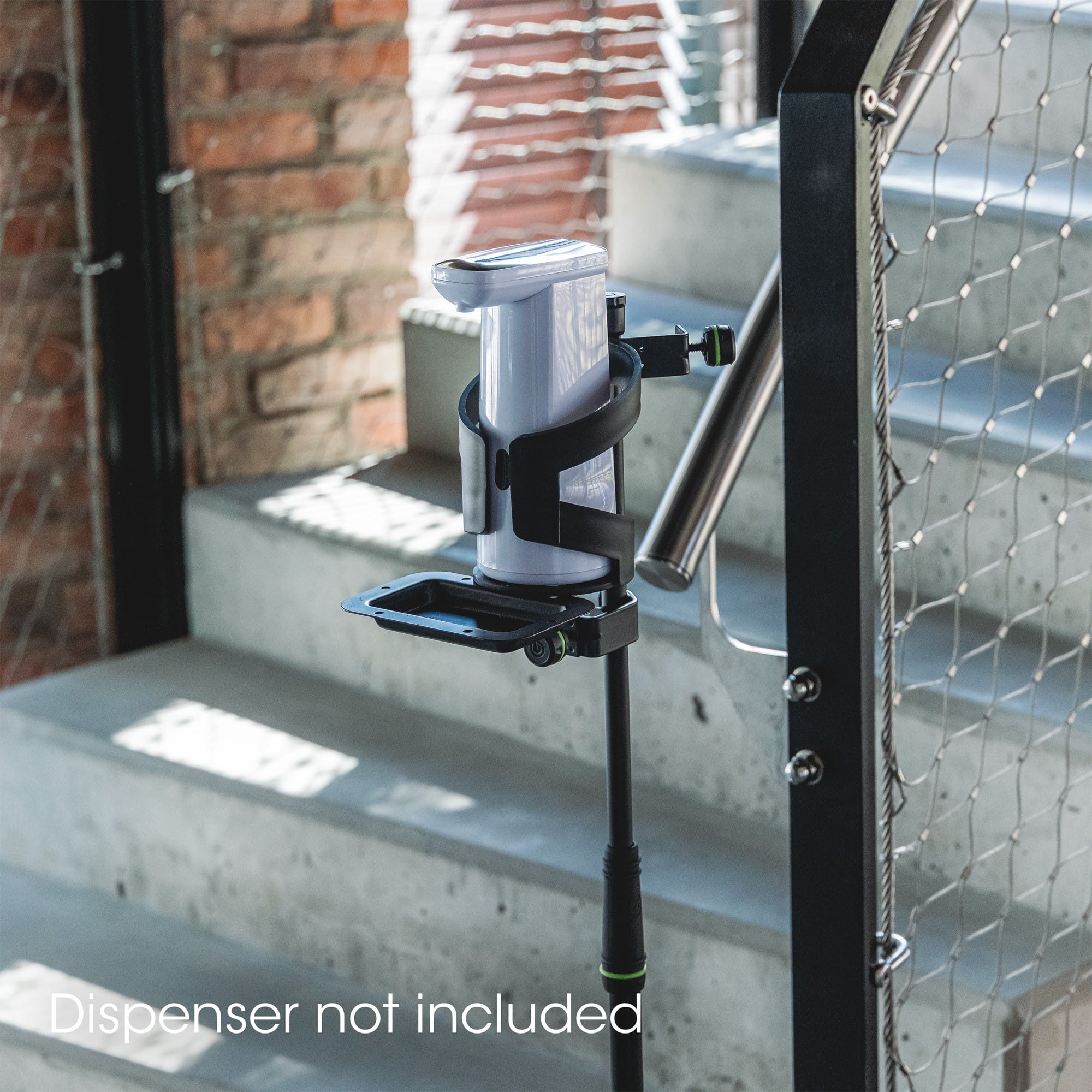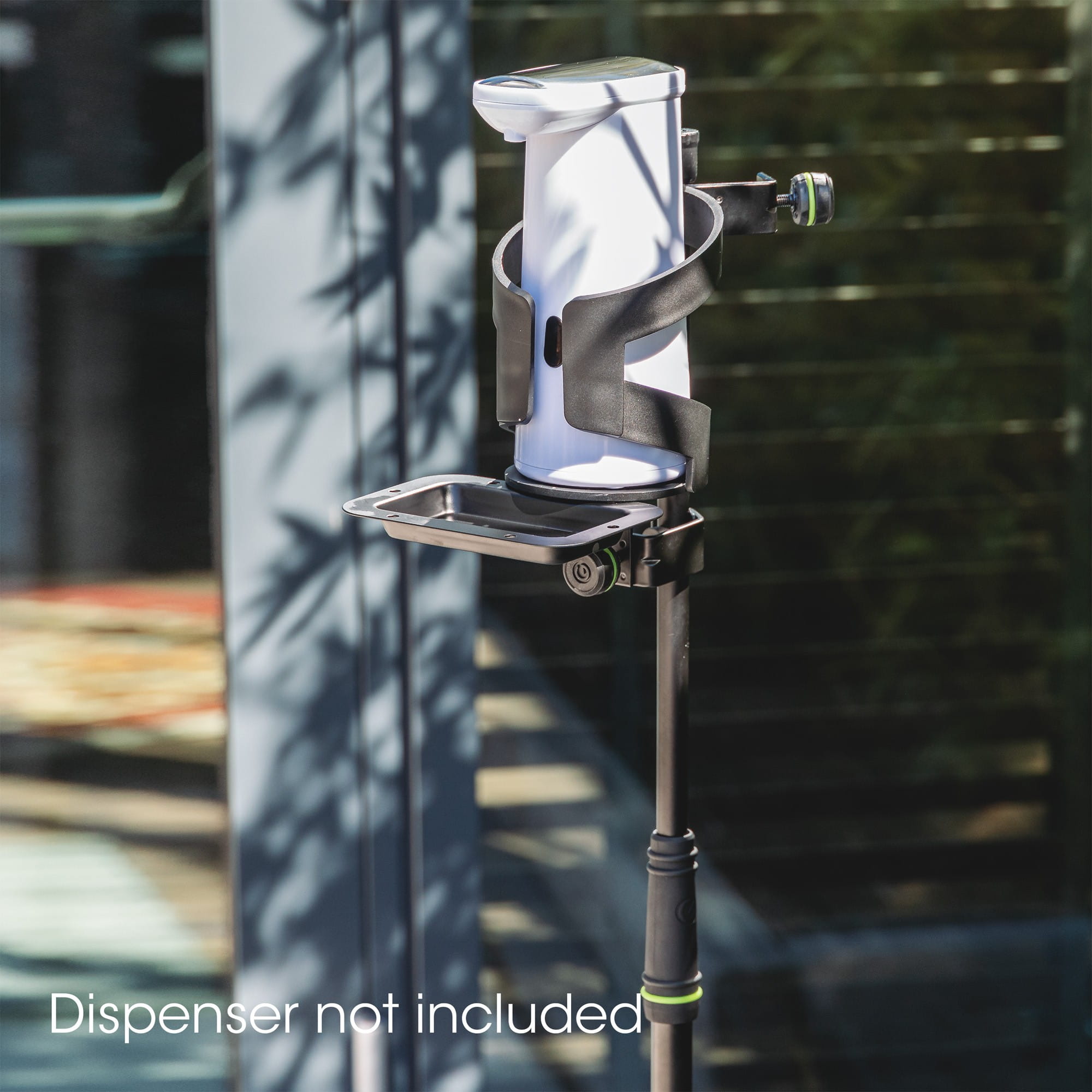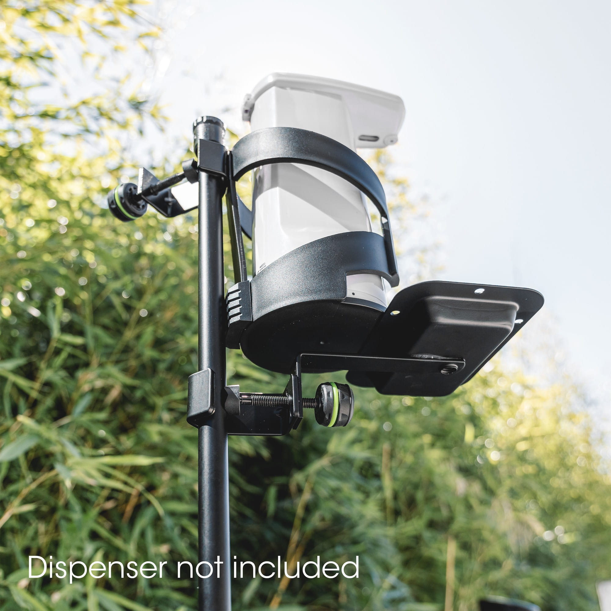 Ten zestaw łączy: GMS23, GMS2WP, GMAMH01, GMADRINKL i 8705BLK. Elementy można szybko zmontować i idealnie nadają się do użytku mobilnego. Możliwe jest przymocowanie dodatkowej płyty obciążającej (GMS2WP) do dolnej części podstawy. Jest to szczególnie ważne, jeśli używasz dozownika mechanicznego zamiast elektronicznego. Do dowolnych dozowników o średnicy do 90mm